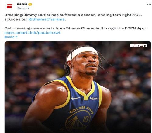 北京時(shí)間2026年1月20日下午,ESPN消息,據(jù)NBA著名記者Shams報(bào)道,勇士大將巴特勒遭遇右膝前十字韌帶撕裂,賽季報(bào)銷。