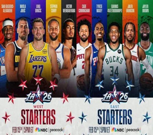 今日,NBA正式官宣全明星首發(fā)陣容: