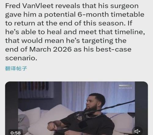 好在去年九月份意外遭遇右膝前十字韌帶(ACL)撕裂的范弗利特,有可能本賽季復(fù)出,本人之前表示若恢復(fù)順利且能按期完成康復(fù)計劃,最佳回歸時間將瞄準(zhǔn)到今年3月底。