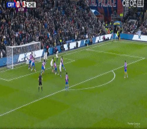 第88分鐘,扳回一城,理查茲門前頭球破門,水晶宮1-3切爾西