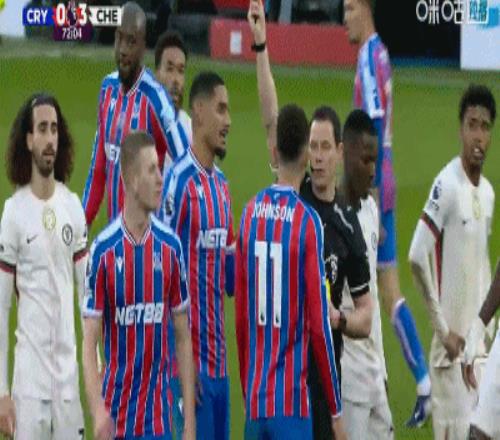 第73分鐘,沃頓飛鏟凱塞多,裁判將其兩黃變一紅罰下
