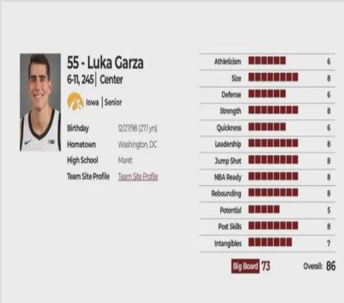 優(yōu)點(diǎn):愛荷華大學(xué)功勛球員,創(chuàng)造校史得分王紀(jì)錄,連續(xù)兩年入選全美最佳陣容、大十聯(lián)盟年度最佳球員、全美最佳中鋒,低位進(jìn)攻技術(shù)自如流暢、得分手段豐富多樣、手感柔和絲滑,在愛荷華大學(xué)最后兩個(gè)賽季場(chǎng)均得分高達(dá)24分,展現(xiàn)出出色的得分能力,能拉開空間,并穩(wěn)定高效命中三分球,大四賽季三分球命中率提升至44%,場(chǎng)均出手超過3次,作為中鋒能里能的外進(jìn)攻全面性在選秀中堪稱一流,賽季結(jié)束后通過減重來提升橫移速度和腳步速度,改變了原有體型,在選秀前各項(xiàng)測(cè)試中表現(xiàn)出色,大幅提升選秀口碑,他的比賽活力、積極性、職業(yè)素養(yǎng)出類拔萃,每次上場(chǎng)都會(huì)拼盡全力,比賽經(jīng)驗(yàn)豐富,應(yīng)該能夠立即為球隊(duì)做出貢獻(xiàn),他渴望進(jìn)步并適應(yīng)不斷變化的比賽要求,這點(diǎn)在他從低位進(jìn)攻球員轉(zhuǎn)型為一名空間型中鋒的過程中顯而易見,極強(qiáng)的可塑性和充沛的斗志應(yīng)該能讓他對(duì)NBA一直保持沖擊力,在低順位球員中他是最值得信任的球員.