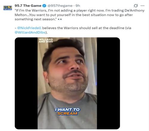 NBC記者尼克-菲爾德談到目前的勇士隊(duì),他表示:如果我是勇士管理層現(xiàn)在我不會(huì)去引援,我會(huì)交易掉梅爾頓換取未來(lái)資產(chǎn),讓下賽季能保持競(jìng)爭(zhēng)力。