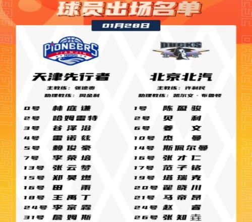 北京迎來趙睿與斯佩爾曼復出,周琦與曾凡博繼續(xù)因傷缺席,天津迎來林庭謙復出。